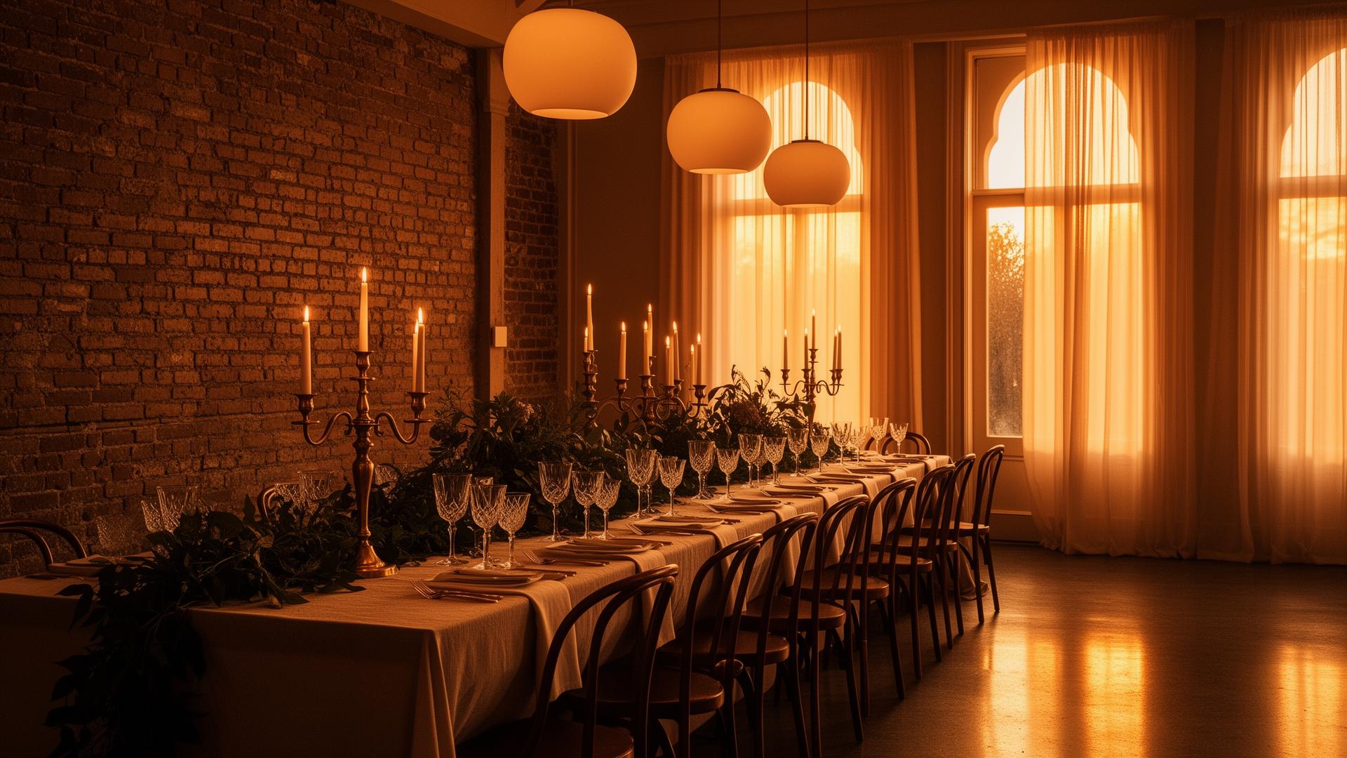 Exposed brick, polished concrete, soft warm light, and a private outdoor alleyway — designed to host the kind of evenings people remember. Wi-Fi, Bluetooth audio, restrooms, flexible layouts, and a private back area are all included.